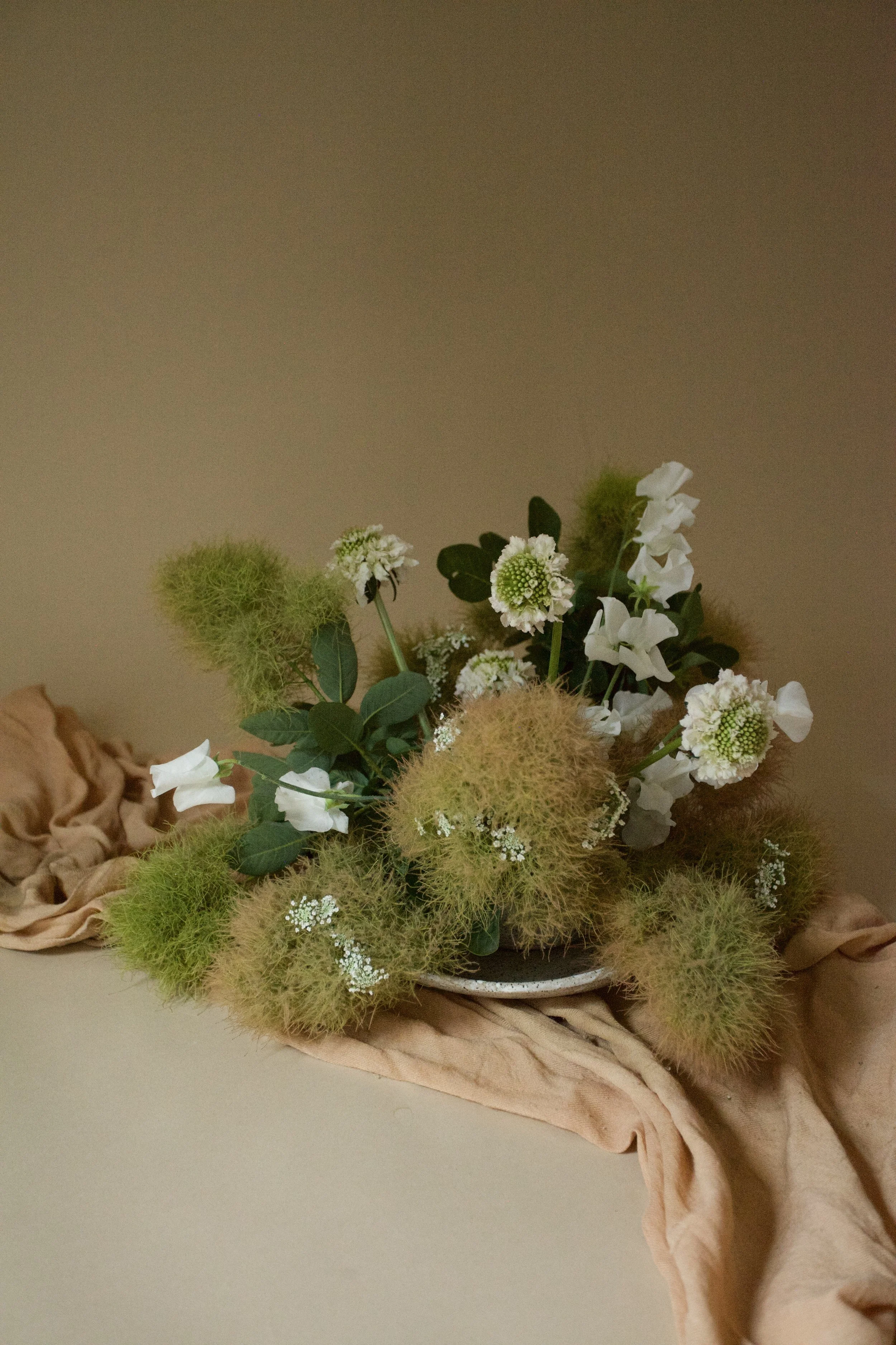 Create a powerful statement of remembrance with a ground spray designed to rest at the base of a casket, urn, or memorial display. Each arrangement is composed in our signature wild, organic style — sprawling and natural, as if the flowers are emerging from the earth itself. These low, lush designs bring an intimate, grounded presence to funeral services and graveside ceremonies.